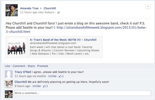 On the ride home from school earlier this month, I was jamming to Seattle’s Alternative station, 107.7 The End, and Churchill’s single “Change” came on and I immediately fell in love with its contagious chorus! Nowadays radio stations barely ever announce song titles or artists so I always get heated when I don’t know who the great song is by… but then I remember it’s 2K13 and there are things like apps and the internet, so I calm down.